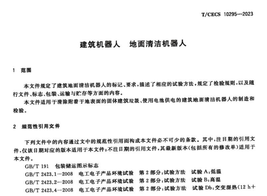 t/cecs 10295-2023 建筑机器人 地面清洁机器人